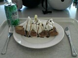 揚げパンアイス乗せ。(トッピングにバナナチップスを刺されてしまった)