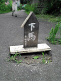 次の建物に向かう途中、井戸からひょろりとハシゴが出てた。